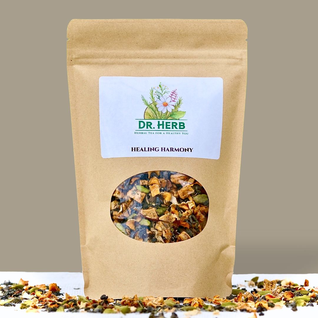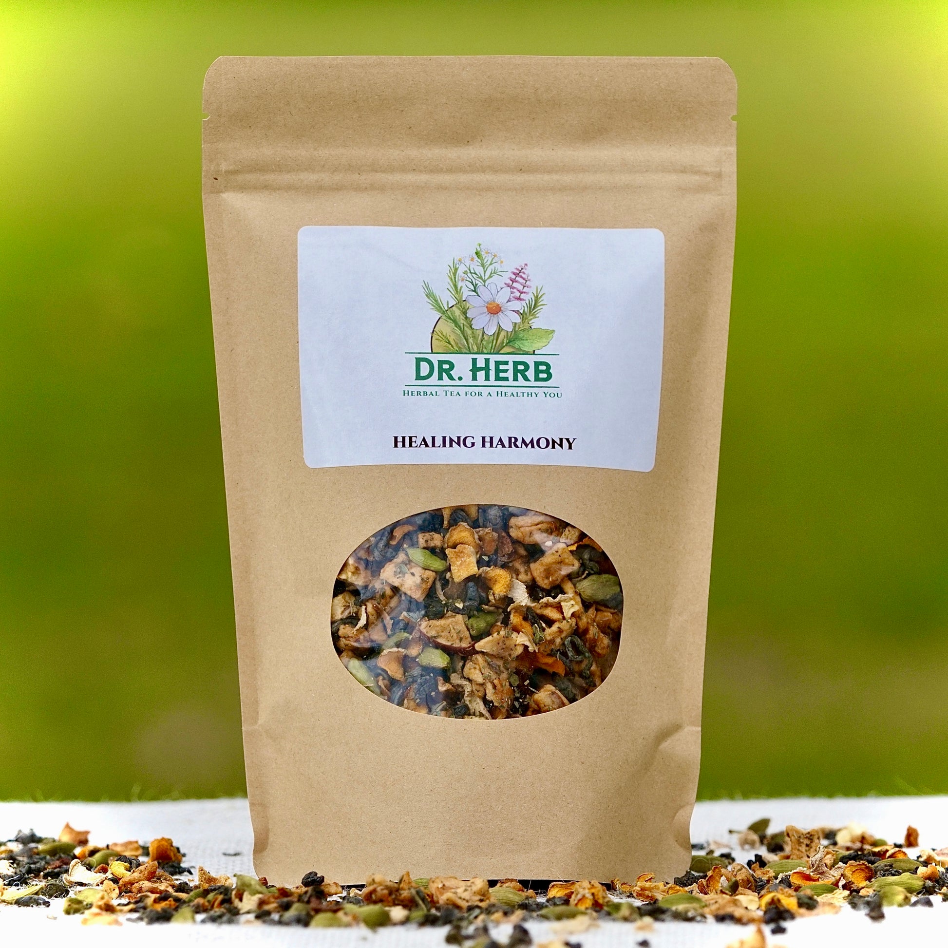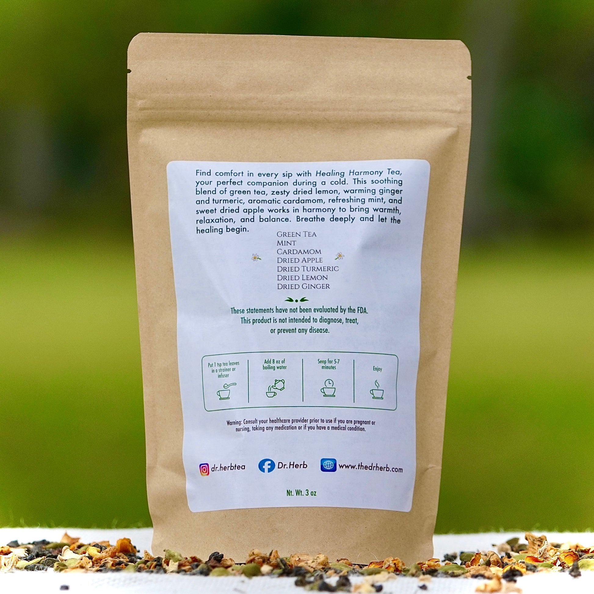 Find comfort in every sip with Healing Harmony Tea, your perfect companion during a cold. This soothing blend of green tea, zesty dried lemon, warming ginger and turmeric, aromatic cardamom, refreshing mint, and sweet dried apple works in harmony to bring warmth, relaxation, and balance.